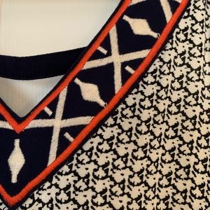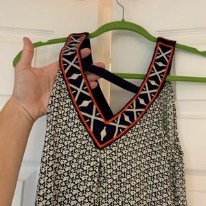 Beautiful embroidered V neck. Navy Blue and white with orange accents. Flowy Tank.