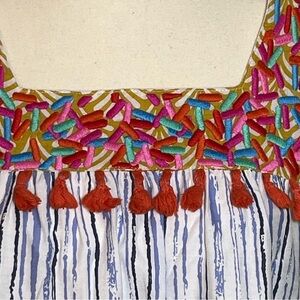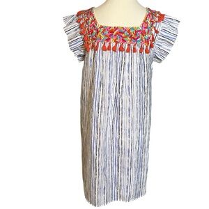 THML Embroidered Tassel Sun Dress Blue White Flutter Sleeves Women’s Size Small