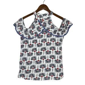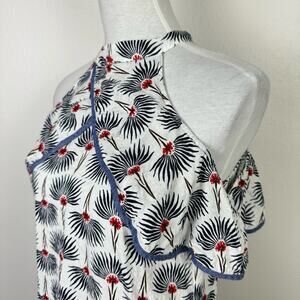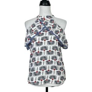 THML Floral Print Crossover Neckline Cold Shoulder Lightweight Summer Top