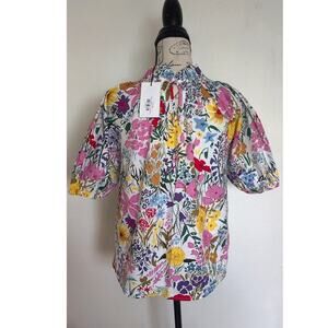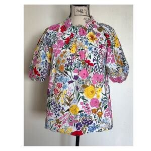 THML Floral Puff Sleeve Top Colorful Size Small Cotton Multicolor Blouse