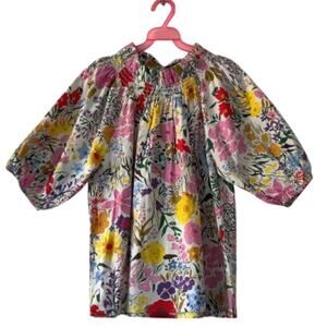 THML Floral Puff Sleeve Top Colorful Size Small Cotton Multicolor