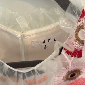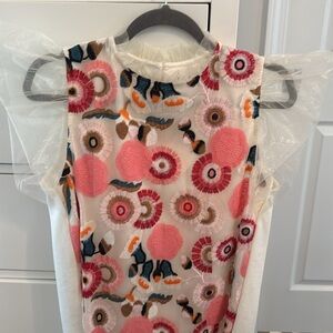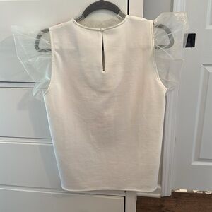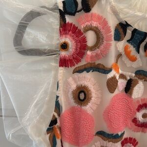 ✨ NWOT Never Worn ✨ THML top with floral appliqué design and sheer flutter sleeves in size small.