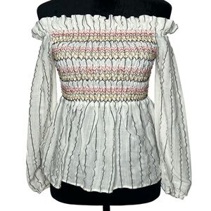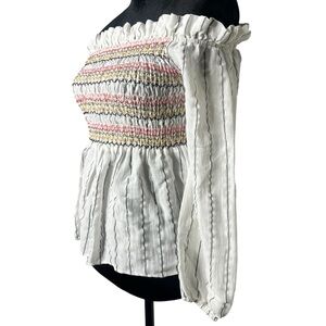 THML Flounce White Stripe Colorful Off-Shoulder Top Women’s Size Small