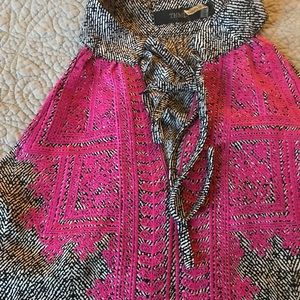 Black and white print with bright pink embroidered overlay. Never worn. Perfect condition.