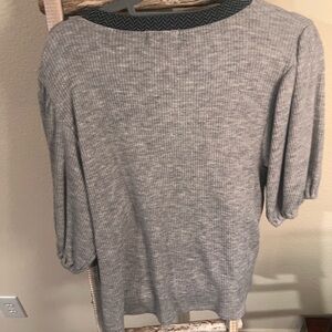 Stylish gray ribbed sweater by THML. Features a textured neckline.