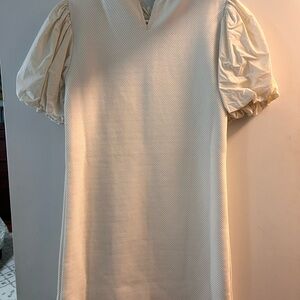 Chic ivory dress with ruffle accents. Stylish and versatile.