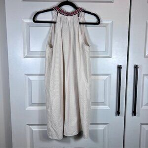 THML Ivory Sleeveless Cotton Dress with Embroidered Neckline & Tassels Small