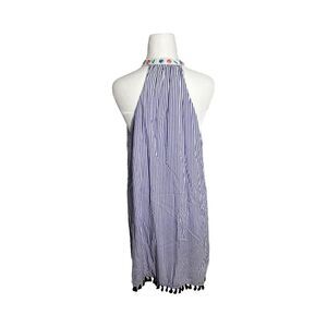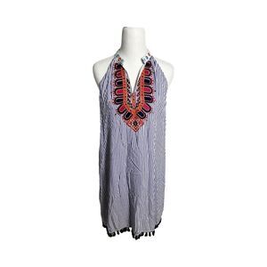 THML Large Embroidered Striped Halter Dress White Blue Pink Purple Summer Beach