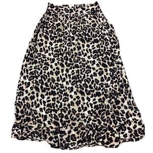 THML Leopard Print Asymmetrical Ruffle Midi Length Skirt