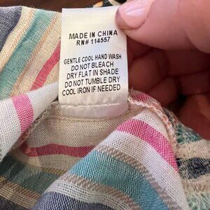 THML's Lightweight V Neck Striped Women's Pullover is a trendy boho lagenlook top in size XS. Multicolored stripes on breathable cotton material provide a chic, comfortable wear.