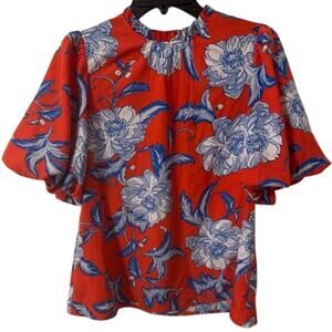 THML Malibu Flower Print Bubble Sleeve Top NWT S