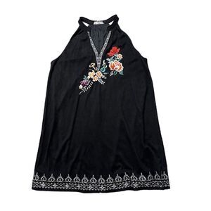 THML Microfiber Vegan Suede Embroidered Halter Dress Size Medium