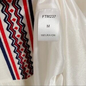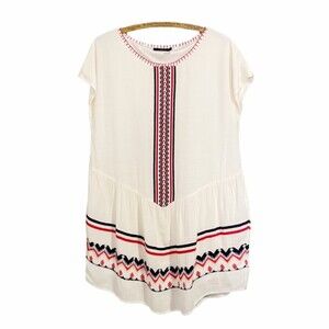 THML Mini Dress Women's Size Medium Cream Boho Tribal Embroidered Dropped Waist