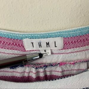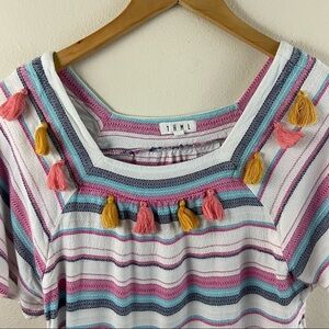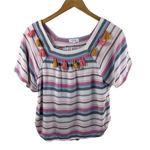THML Multicolored Striped Textured Tassel Detail Pullover Bohemian Top Sz S
