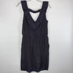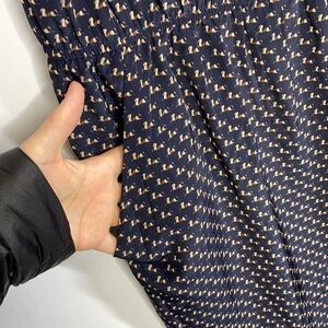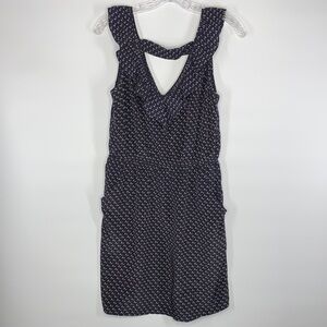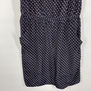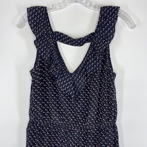 THML Navy Blue Tan Horse Print Vneck Ruffle Front Dress with Pockets Medium