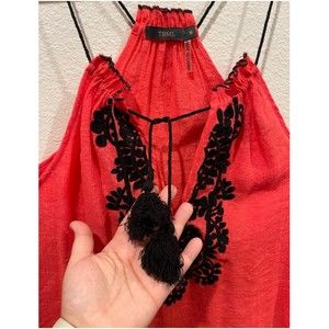 THML Orange Red Embroidered Tank Top. Size M