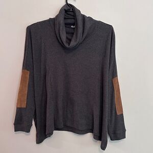 THML Oversized Boxy Thermal Turtleneck Top Womens Medium Elbow Patches Grey