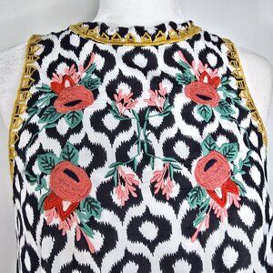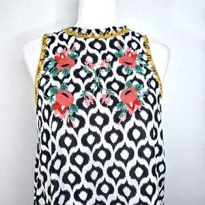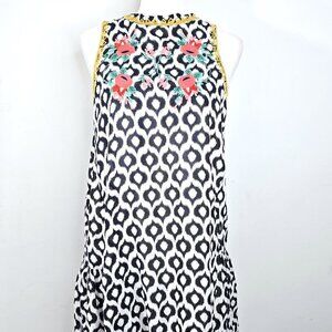THML Patterned Floral Embroidered Black White Sleeveless Shift Dress