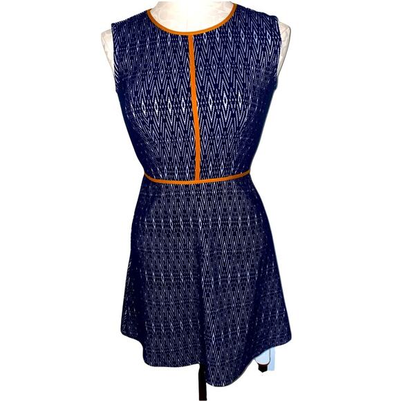 THML Patterned Sleeveless Dress with invisible zipper navy blue and burnt orange/brown sz XS