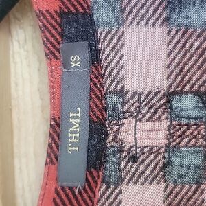 THML Plaid Embroidered Top with Tab Sleeves Xsmall