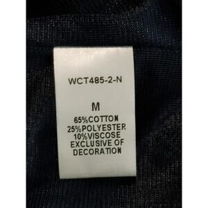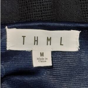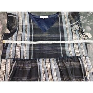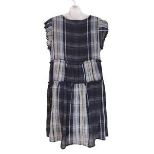 THML Pompom Short Sleeve Patchwork Boho Dress Navy Womens Size Medium Bohemian