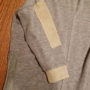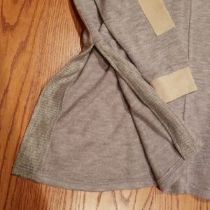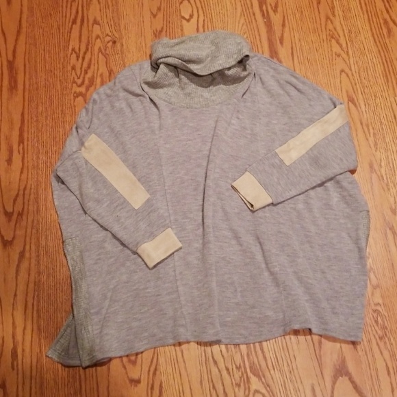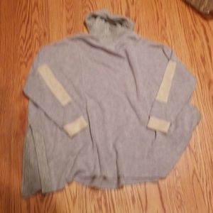 Light gray poncho with cream suede detailing on the arms and wrists. Very high end and excellent quality. Very comfortable, just too wide for me since I'm so little. Worn once but this is like new.