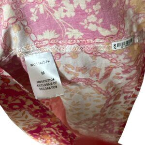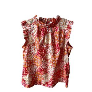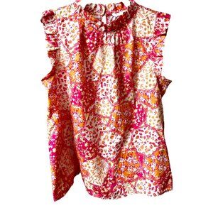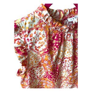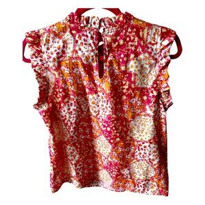 THML Preppy Floral Ruffled Short Sleeve High Neck Pink Orange Blouse Top Size M