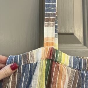 THML Rainbow Stripe Tassel Midi Dress Sz XS 100% Cotton Summer Beach Casual Boho