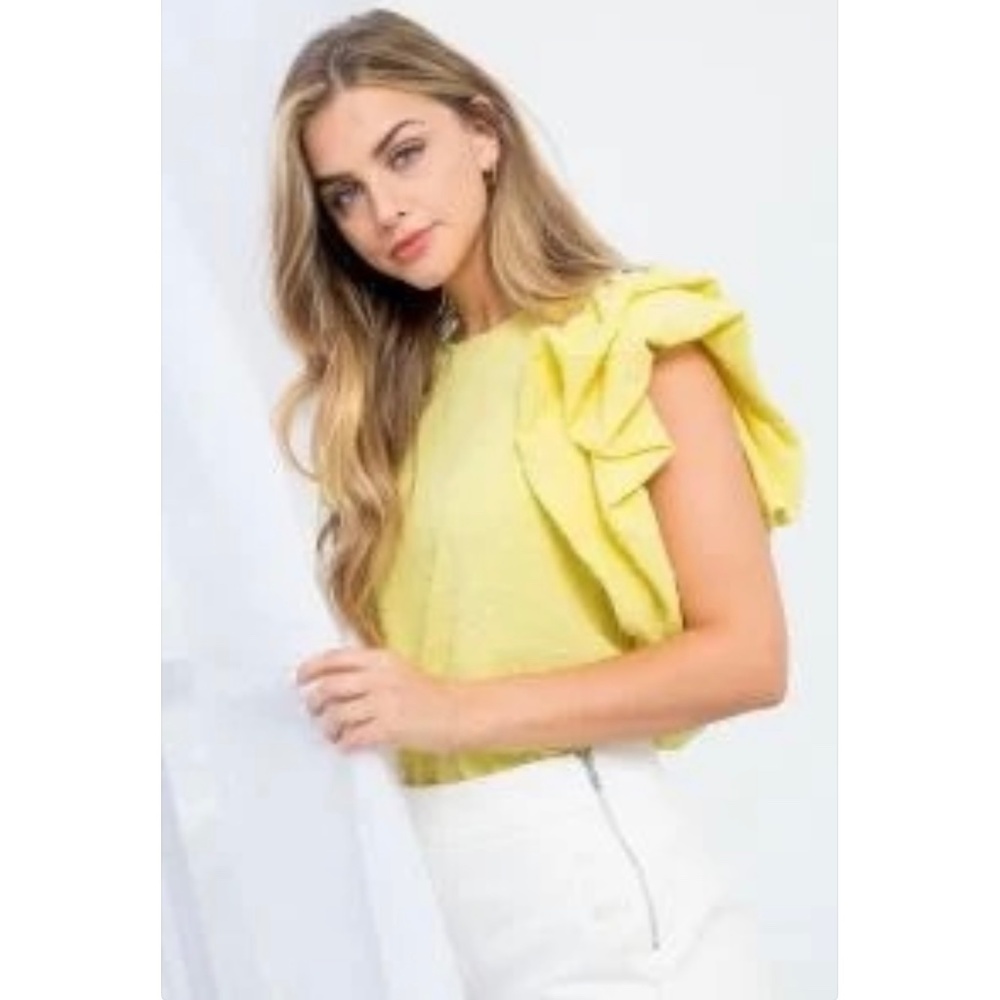๐ New with Tags Womenโs THML Clip Dot Ruffle Sleeve Top