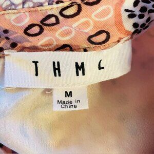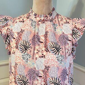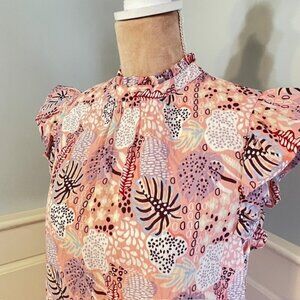 THML Ruffled Flutter Sleeve Tiered Tropical Floral Pink Mini Dress S/M
