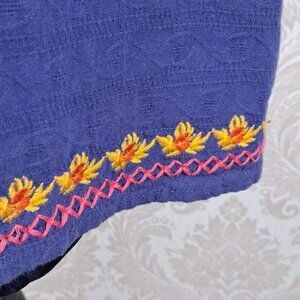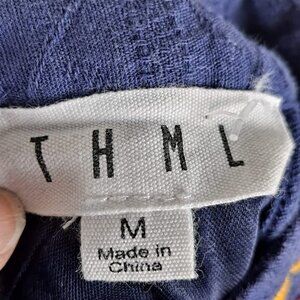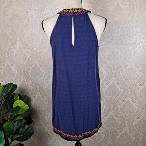 THML Size Medium Blue Cotton Halter Neck Shift Dress Embroidery Detail Boho