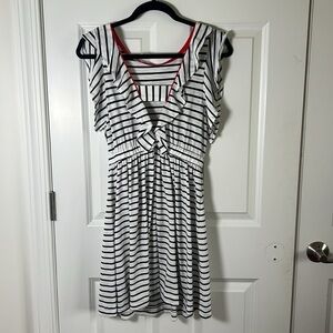 THML Size Small Blue and White Stripe Dress with Red Detailing and flowy sleeves
