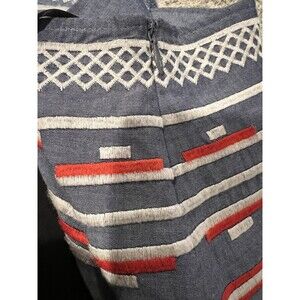 THML Embroidered Striped Mini Skirt Blue Gray Size Large Boho Print. Side zip. 100% cotton. Lined. Waist measures approx 34 Waist to hem measures approx 16