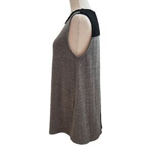 THML Sleeveless Knit Long Top Back Zip Fringe Trim Neckline Black + Gray XS