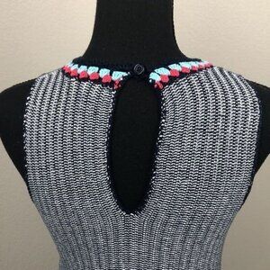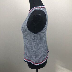 THML Sleeveless Sweater Top Blue/White Stripe Knit Crochet Round Collar Cotton S