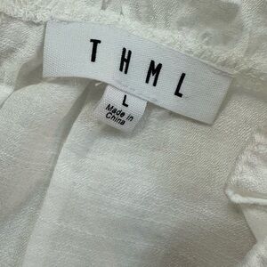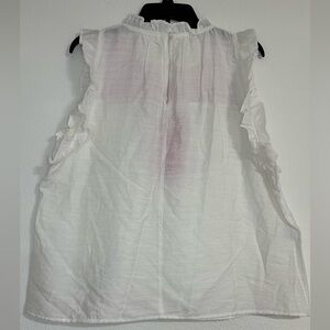 This chic sleeveless blouse by THML showcases a crisp white fabric beautifully contrasted with ornate pink embellishments. The ruffled accents add a playful touch, making it a versatile piece for both casual outings and more refined settings. Its lightweight design ensures comfort and elegance all day long.