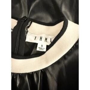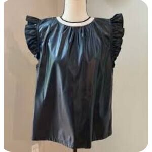 THML Small Black Faux Leather Short Flutter Sleeve Flowy Blouse Knit Neck