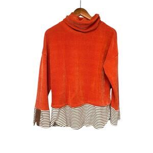 THML Soft Orange Cowl Neck Pullover Sweater Medium Striped Under Layer
