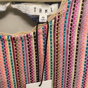 THML Striped Babydoll Top with Rainbow Embroidery