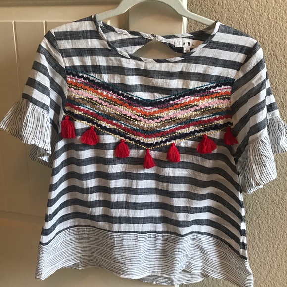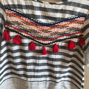 This top is ADORABLE! It’s great quality, but just not for me. It is in fabulous condition and has never been worn. The front has adorable red tassels and it has a keyhole back. So cute!