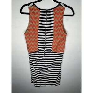 THML Tank Dress Navy White Striped Chevron Womens Medium Embroidery Zip Back.