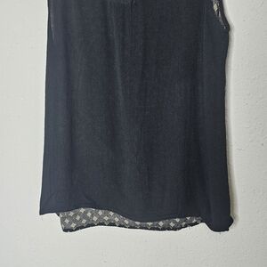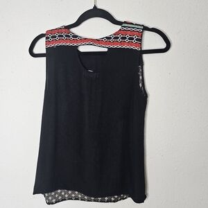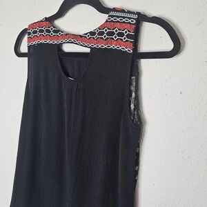 THML Tank Top Womens XS Embroidered Boho Mixed Media Flowy Top Black Red Rayon