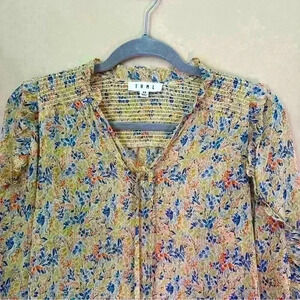 THML Tie Neck Blouse Floral Ruffles Sz XS