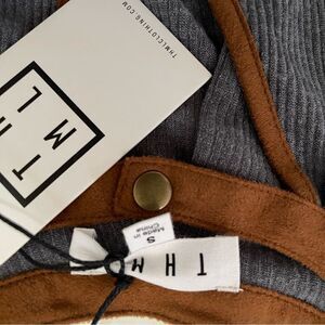 THML Tunic Dress Suede Trim Women S Small Gray Ribbed Keyhole Pockets