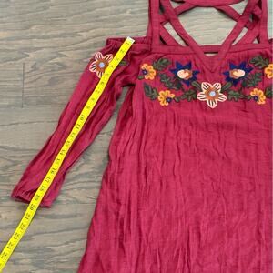 THML Violetta Cold Shoulder Strappy Embroidered Long Sleeve Dress Burgundy Size Medium