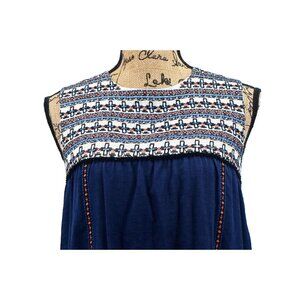 THML Women Embroidered Blue Dress Extra Small Sleeveless Round Neck Rayon Lined