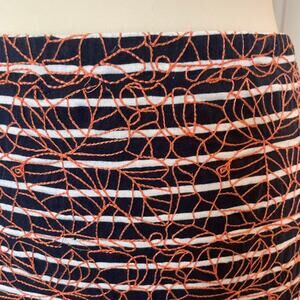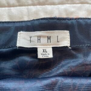 THML Women's Blue White Patterned Elastic Mini Skirt, size XL