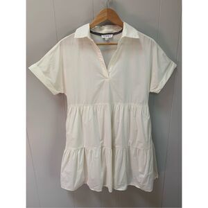 THML Womens Collared Short Sleeve Cream Dress Medium