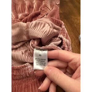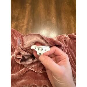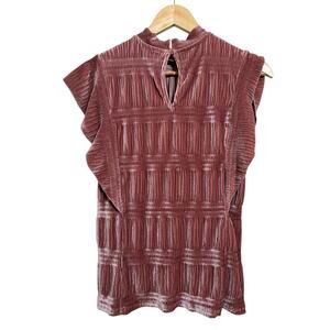 THML Women's Dusty Pink Velvet Smocked Short Flutter Sleeve Blouse Size XS