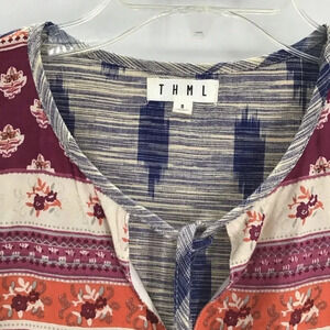 THML Women’s Multi-Patterened V-Neck Tunic Style Summer Dress Size Small